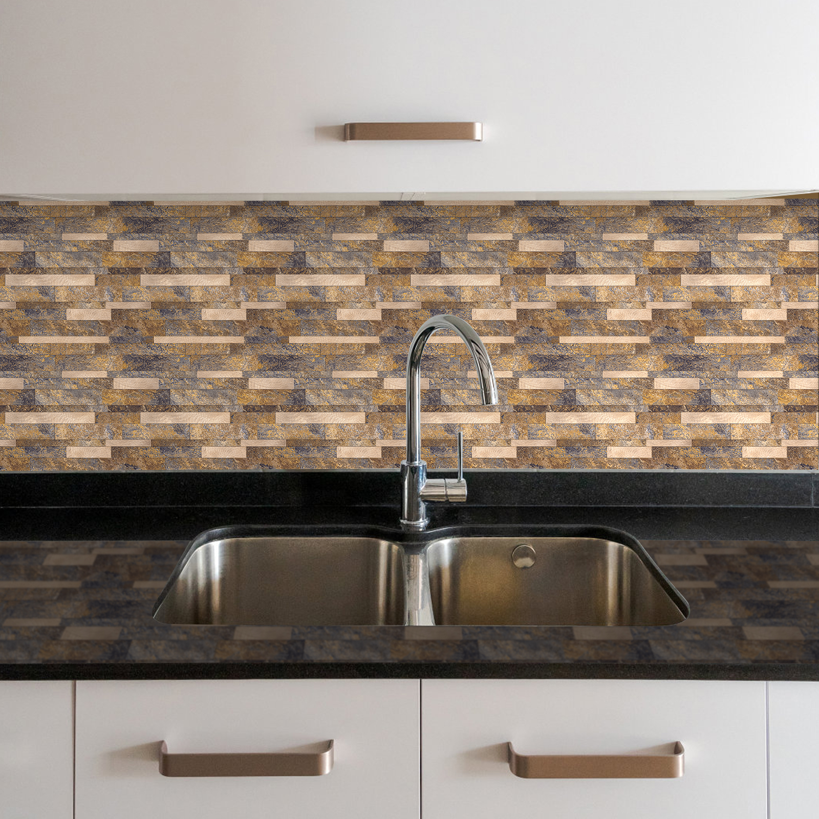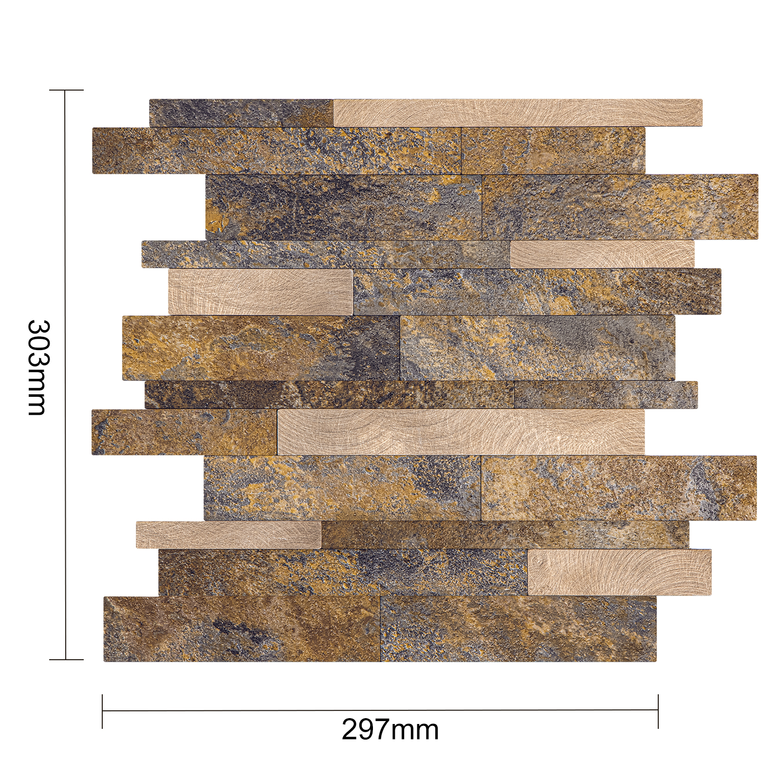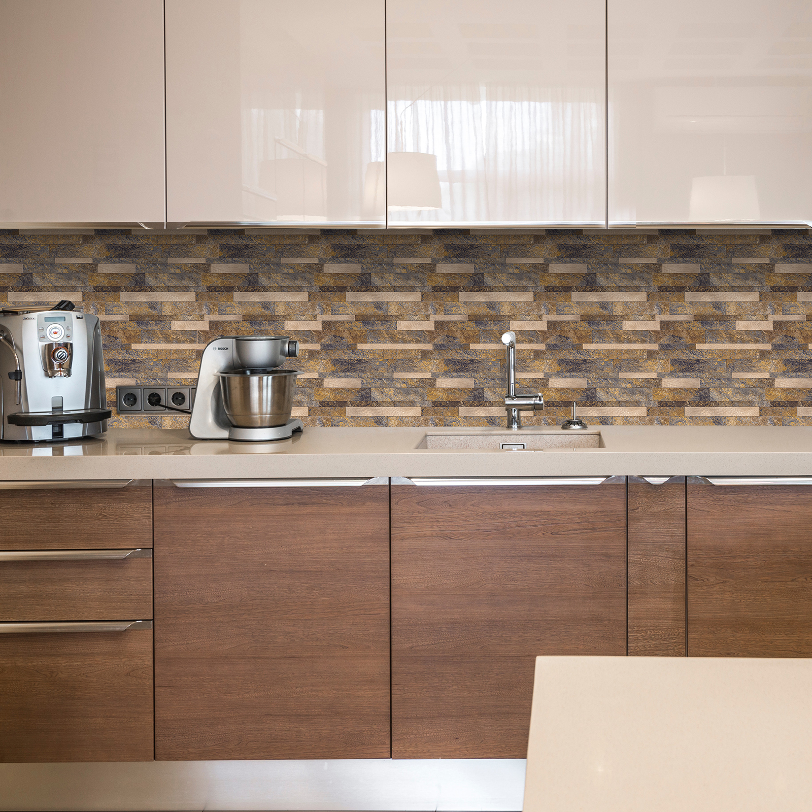 Die beeindruckend authentischen Steinoptiken dieser Fliese vermitteln das Gefühl von natürlicher Eleganz und Robustheit. Diese Mosaikfliese eignet sich besonders gut für Küchenrückwände, Badezimmerwände, Akzentwände oder sogar für Wohnbereiche, wo sie eine rustikale und charmante Atmosphäre schafft.