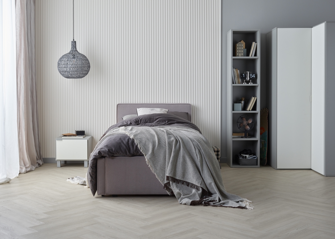Für Ihr Zuhause nur das Beste: REGA Vinylböden im Fischgrätmuster verbinden den klassischen Stil des Fischgrätdesigns mit den Vorteilen moderner Vinylpaneele. Die integrierte Trittschalldämmung reduziert den Gehschall, verbessert die Raumakustik und sorgt für ein angenehmes Laufgefühl.