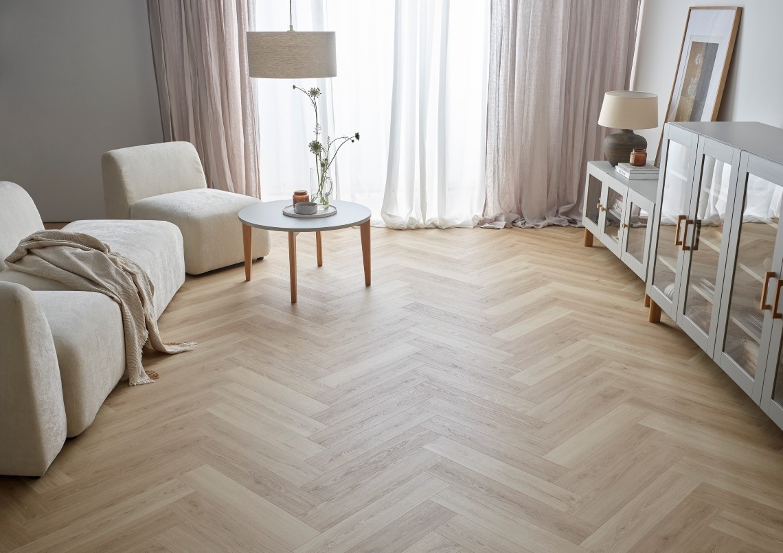 Für Ihr Zuhause nur das Beste: REGA Vinylböden im Fischgrätmuster verbinden den klassischen Stil des Fischgrätdesigns mit den Vorteilen moderner Vinylpaneele. Die integrierte Trittschalldämmung reduziert den Gehschall, verbessert die Raumakustik und sorgt für ein angenehmes Laufgefühl.